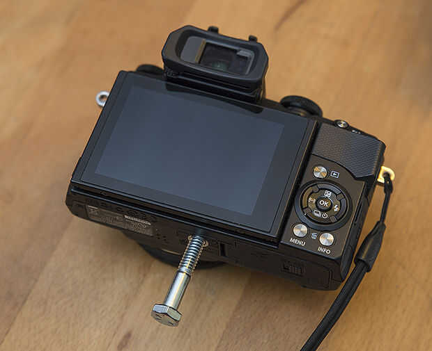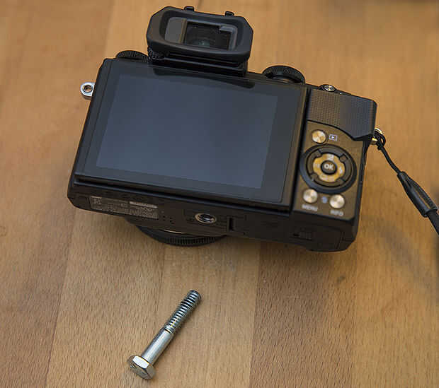 Prueba si el perno ajusta la cámara de trípode y medida cómo