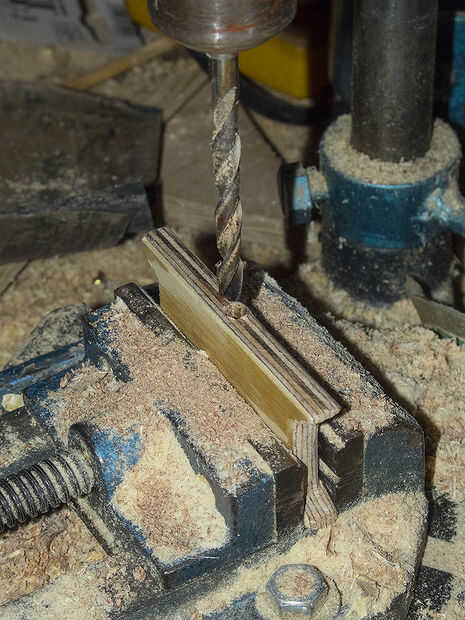 Perfore un orificio de 7 mm en el mecanismo de botes giratorios según la plantilla