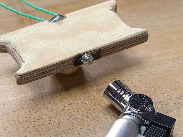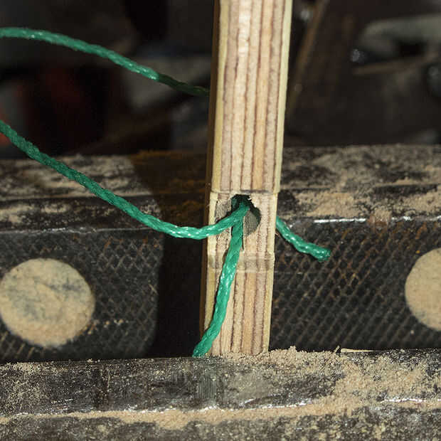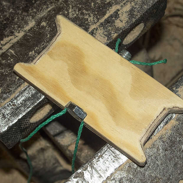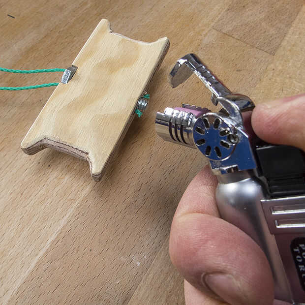 Derretir los extremos de las cuerdas con el encendedor para que aline con el Embobinadora y selle el orificio