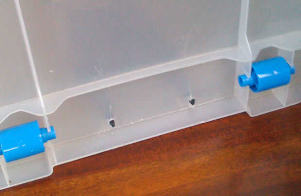 Voltee el contenedor y cuidadosamente perforar dos agujeros donde sólo marcó
