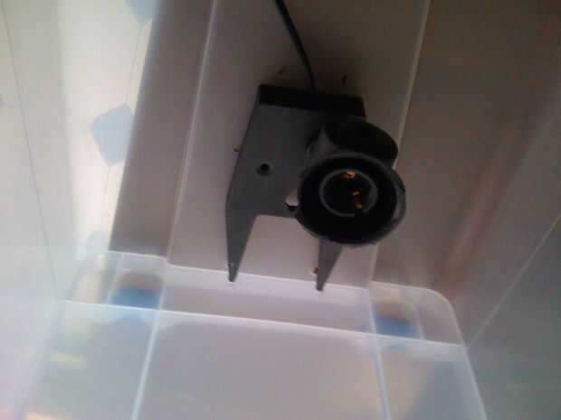 El sostenedor de la lámpara a lo largo de la pared corta de la caja, con las dos puntas apuntando hacia la parte posterior de la caja y alinee de modo que está en el centro.
