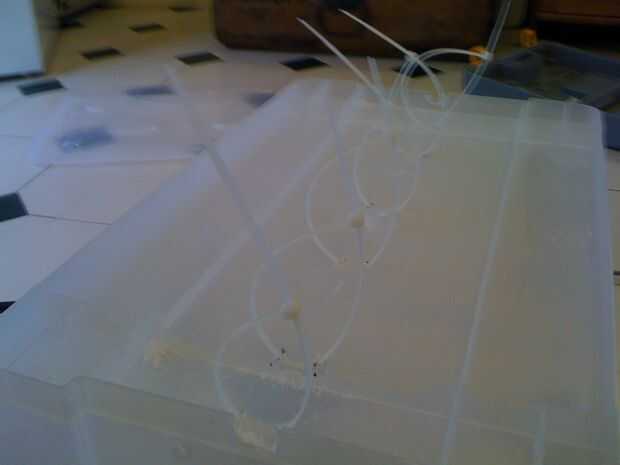 Sacar el brazo por un momento y cuidada taladro los agujeros marcados para las bridas.
