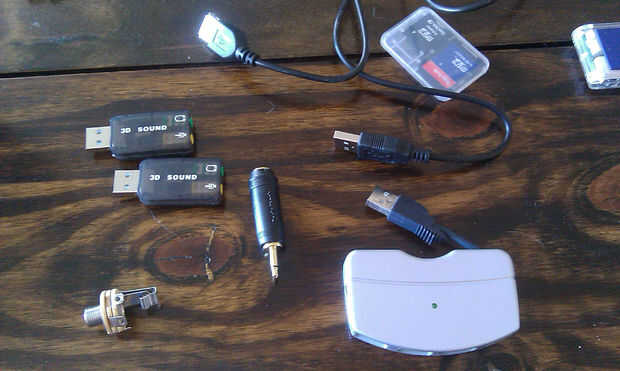 como por el aporte, está recibiendo final va a ser un jack de 3,5 mm, pero hay todo tipo de cables de conversión y tomas para ayudarle hacia fuera. tan pronto como llegué a este trabajo, tenía grandes planes de poner 6 o 8 de la tarjetas de sonido usb y un cubo dentro de un recinto agradable con algunos cables de desbloqueo que extender al conector de entrada al exterior sin tener que hacer nada a las tarjetas de sonido y terminar con la toma de 1/4 de pulgada ya que en su mayoría utilizan los de guitarra y algunos de mis micrófonos. nunca consiguió alrededor a él, pero no dude en engañar a su configuración con una bonita caja de madera (inicialmente quería usar una caja de puros). no te olvides de añadir un montón de luces bastante. todavía tengo un montón de ideas...