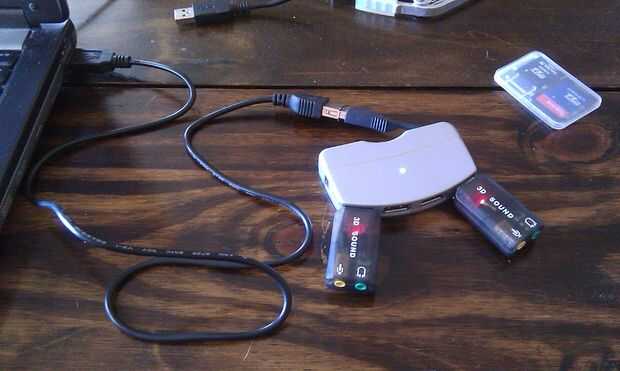 una vez que tengas tu usb las tarjetas de sonido, puede conectar em. Recomiendo usar un hub usb para facilitar las cosas y utilizar más pistas, pero si usted sólo quería grabar dos pistas y dos puertos usb libres, no es una necesidad.