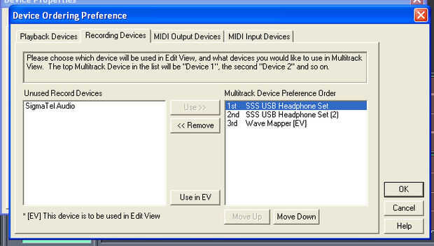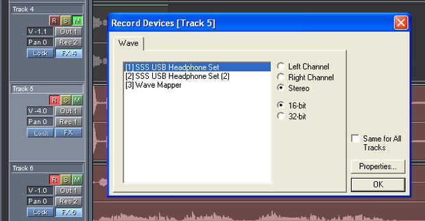 una vez que tienes todo de una vez establecido, ir a la sesión ver (con todas las pistas) y cambiar las entradas de registro para las pistas que desee haciendo clic en el Rec botón (ver foto). para averiguar qué entrada es que (ya que los dispositivos son el mismo nombre) la forma más rápida es asignarlos todos a diferentes pistas y a golpe de récord (Asegúrese que cada pista se encuentra a grabar) y probarlos.