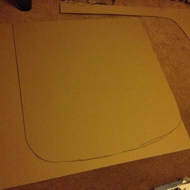 Cortar esta forma y usarlo como plantilla para otro dos formas similares asegurando que uno de ellos las flautas en un ángulo de 90 grados (básicamente usted tendrá una forma fueron las flautas a lo largo de la mesa y uno se corren en la mesa)