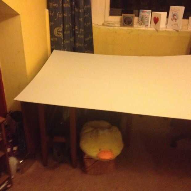 Coloque la cartulina encima de la mesa asegurando que el corrugado flautas * ejecutar en la alineación de la tabla y (en este caso) por debajo de la marca la forma de la tabla.