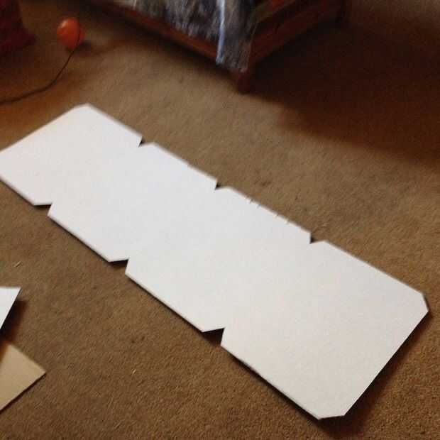 una vez tuve cuatro tiras que ligeramente marqué en las partes donde era agregar un pliegue y luego los dobla en cuadrados, taping en la articulación al actuar como cuatro apoya y unido a las esquinas exteriores de la base. como se puede ver debido al borde curvado que los soportes delanteros son un poco más atrás. Esto tenía el efecto interesante de crear otro espacio de rastreo de nyx