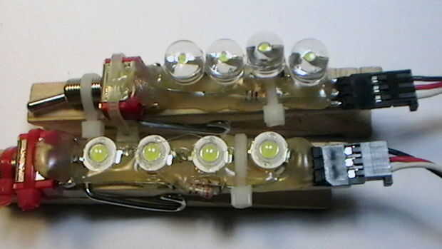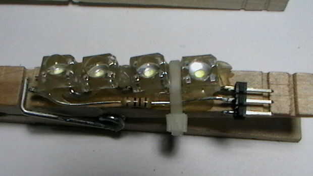 Usted se estará preguntando por qué decidí ejecutar el piraña y el sombrero de paja LED hasta debajo de las nominales 20 miliamperios. El componente más pequeño LED están en su máxima eficiencia en cerca de 8 miliamperios. También los circuitos de potencia más baja pretenden ser lo suficientemente brillante para leer por si cerca de 1 a 2 pies por encima de un libro. Estos eran bastante aceptables para la lectura, con 1 vatio LED hará una luz buena zona en un apagón. El clip con la Asamblea de Plaza LED (uno 5 fotografiado de arriba) era un automóvil y se utilizará como una luz de área así.