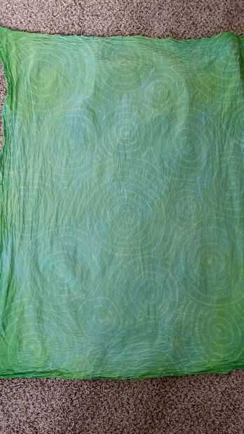 una vez que ha terminado su ronda final de morir dar su tela una limpieza extra con su enjuague final para eliminar el pegamento. el producto final sólo será visible una vez que se seque ya que algunos colores son más vibrantes cuando está mojado. Cuando esté seco usted puede convertirlo en lo que usted quiere-bufandas, vestidos, ropa de playa, o en mi caso algunas cortinas. lava por sí mismo la primera vez o dos y luego con como los colores después de que en agua fría.