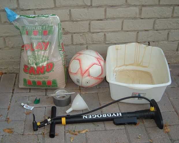 Mi esposa un 2,5 lb y balones medicinales de 5 libras para sus entrenamientos ligeros, pero no pudo encontrar lo que ella necesita en cualquiera de las tiendas de artículos deportivos. Pensé que yo podría hacer las bolas de medicina tamaño que quería