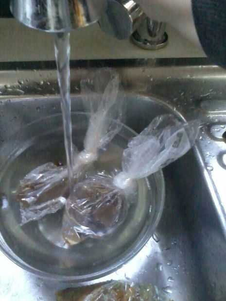 4) poner la bolsa dentro de su envase y se deja reposar un poco.