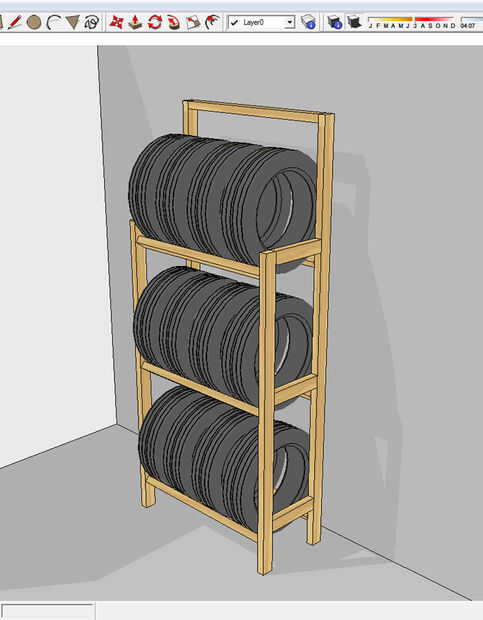 Las dimensiones son de 3 juegos de neumáticos de 15" pero por supuesto, usted pueden modificar fácilmente los planes para satisfacer las ruedas más grandes. Recuerde que usted tiene que asegúrese de que dejar suficiente espacio para poner los neumáticos en los estantes.