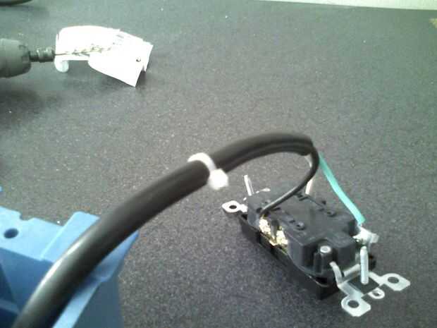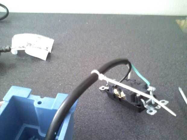 Os adjunto una amarra al cable de aproximadamente 4 pulgadas hacia abajo de la toma. La amarra evita que el cable de tracción desde el exterior de la caja y poner tensión en las conexiones a la salida.