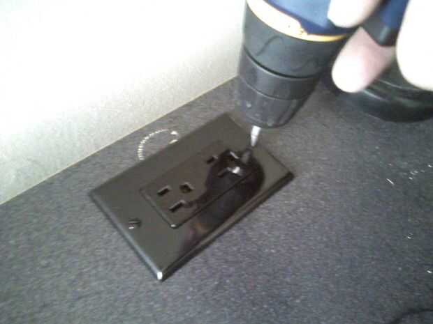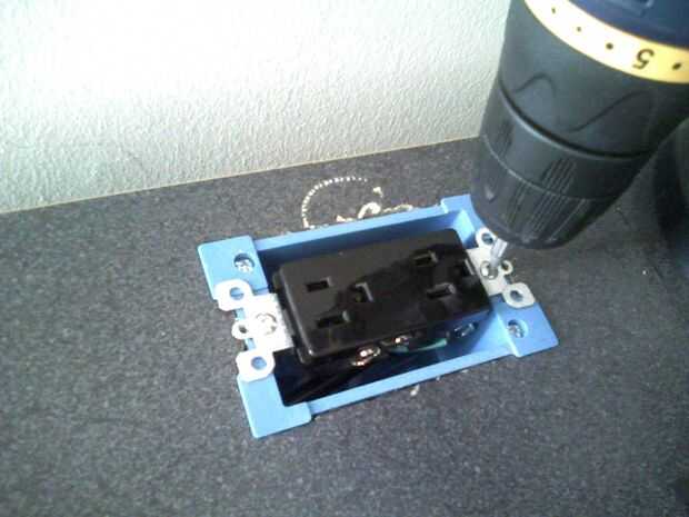 Tornillo de la toma de corriente en la caja.