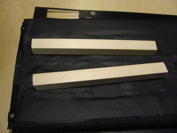 La base del teclado tenía dos orificios en cada lado. Así que corté mi madera a la longitud del lado del teclado. Después de que la madera fue cortada me redondea las puntas con un papel de lija y manchada la madera para darle un agradable aspecto victoriano.