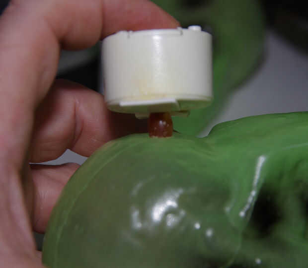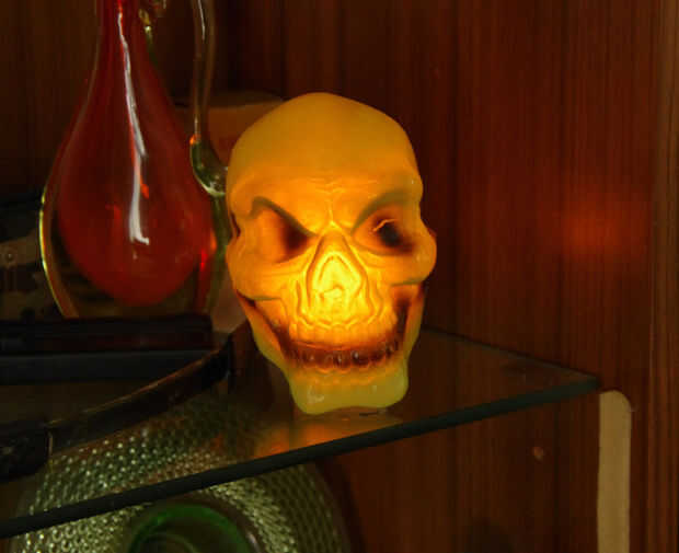 Desprenda el respaldo de la cinta y presione la llama candelita a través del orificio en la base del cráneo, encender y disfrutar.