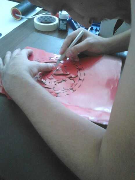 -Papel varios y varios pedazos de madera sobre el que configurar camisetas