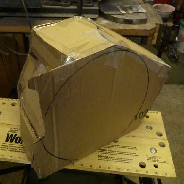 Una vez completada la forma, cubren el entero fuera de la caja con cinta adhesiva. Esto evitará que la resina de poliéster que se pega el cartón para que luego se puede quitar.