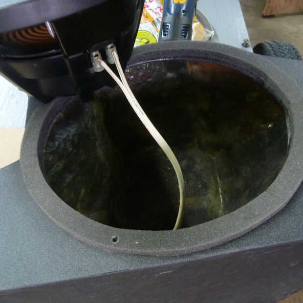 Antes de instalar el altavoz, si el volumen de la caja es menor que el volumen recomendado del fabricante de altavoces, añadiendo fibra de vidrio u u otro material de tipo fibrosa polivinílica llenado efectivamente puede simular una caja más grande del altavoz - parece contra-intuitivo, pero supongo que retarda el movimiento del aire a través del volumen de la caja haciendo parecer como si fuera un volumen más grande