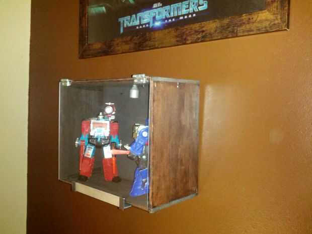 Después de que el pegamento esté seco se puede pintar su caso. Pintado para que coincida con mi marco de fotos pero se pueden pintar a su gusto. Luego tome un pedazo de cinta de imán y colocar en la parte inferior de la caja y el mango de aluminio. Esto sellará la caja. Luego até las bisagras a la caja. También utiliza una herramienta giratoria y corte de la rueda para cortar la parte de atrás de los tornillos para una apariencia limpia. Si desea agregar iluminación puedes hacerlo ahora. Tomé una pequeña luz de flash led y había pegado a la parte superior del techo y corrió los cables a una pequeña batería y el interruptor que se esconde detrás de la parte superior de la caja. Por último poner la espalda en y pégala con pegamento caliente en la parte posterior. tornillo o su batería en la parte posterior del pegamento. Usted puede dejarlo a sentarse en un estante o puedes poner ganchos en la parte trasera para poner en la pared.