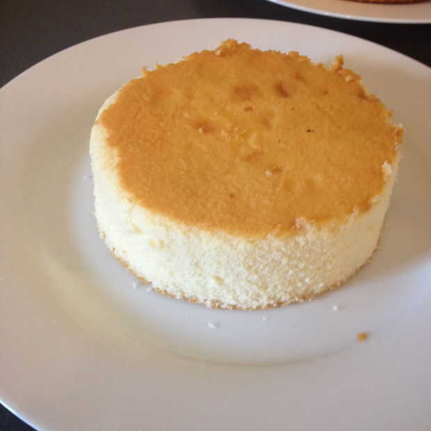 1. Colocar cada esponja en un plato. Debe tener 3 esponjas para una torta con gradas tres.
