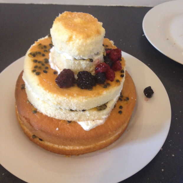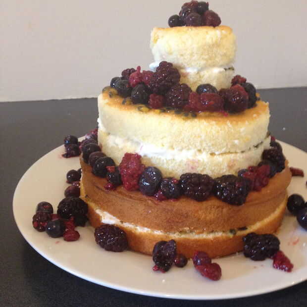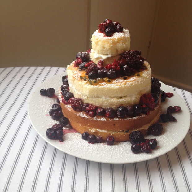 Mi Consejo: Si haces este paso final demasiado temprano, las bayas empapará a través de la torta y el azúcar se absorbe (y desaparecen) en las bayas. Así en su boda, hacer un buen mate o el personal para completar este paso final para usted antes de tiempo la torta.