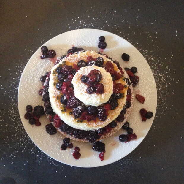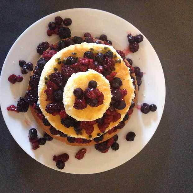 2. Cuchara cualquier extra berry jugo y bayas por encima y alrededor de la placa. Esto hace parecer realmente sabes lo que estás haciendo. ¿Tal vez usted debe estar en Masterchef después de esto?