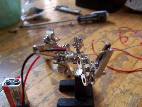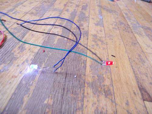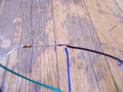 De la soldadura de la resistencia de 330 ohm a clip de la batería de 9 voltios. Luego soldar todos los cables positivos de la LOED al positivo de la batería y los negativos al otro lado de la resistencia. Prueba entonces también ver si los LEDs funcionan.