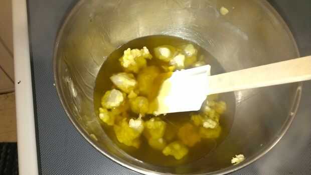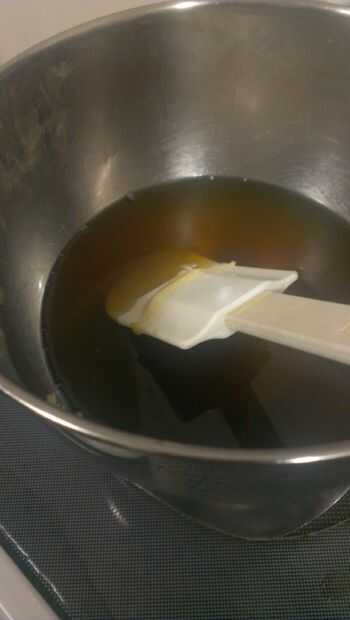 4. Revuelva con frecuencia cera con una espátula hasta que se derritan todos los trozos