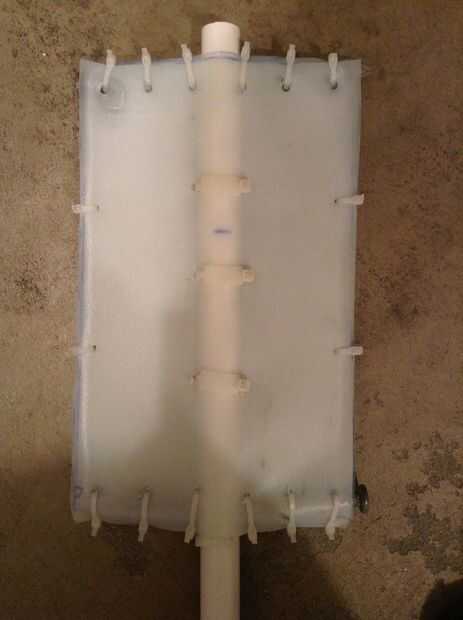 Endecha mitad de sus total paneles en la parte inferior de la PVC y la otra mitad en la parte superior. Deben alinearse todos los agujeros que perfora. Utilizar abrazaderas de plástico para unir los paneles entre sí y a las uñas y PVC. Esta configuración debe proporcionar una estructura rígida.