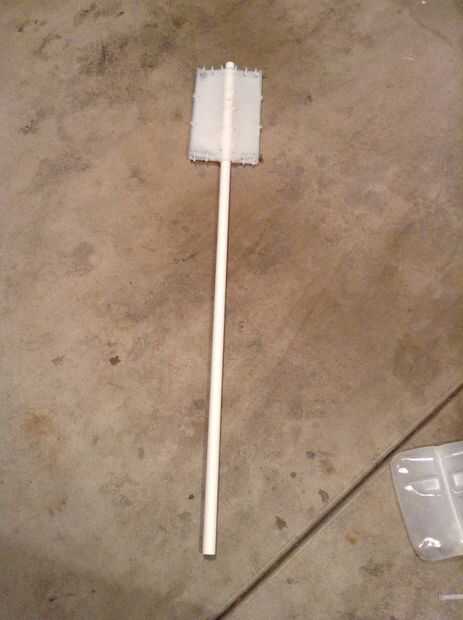 Decidí hacer una paleta simple utilizando un tubo de PVC que tenía por ahí, unas abrazaderas de plástico, dos uñas jardín de 10" y un par de jarras de leche de 1 galón. Si no tienes estas que cosas ahí, puede hacer paletas con casi cualquier cosa: un palo, una superficie plana, estará bien. Si realmente necesitas ayuda, este sitio web tiene unas buena paleta Instructables. Quería probar las aguas antes de comprar un trolling motor, así que mis paletas no eran el mejor busca establece que se vea, pero funcionan.