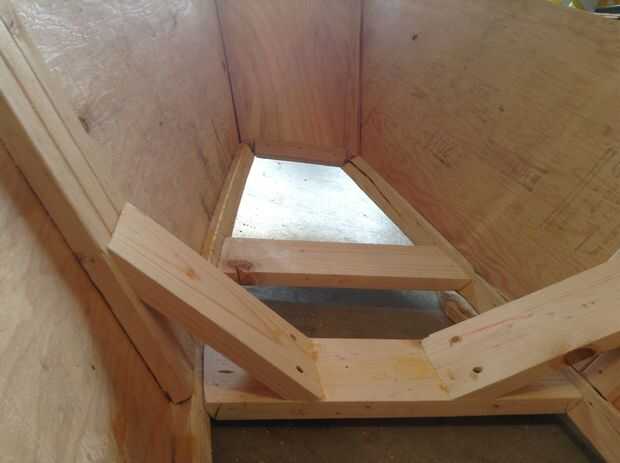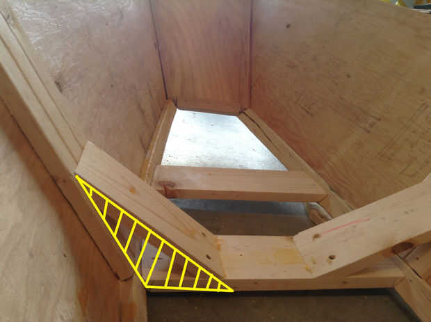 Una cosa que me olvidé de hacer es cubrir las aberturas triangulares que el tríptico, la columna y la tabla de apoyo. Esto hizo increíblemente difícil recubrir el interior de la abertura con epoxi y pintura. Usted debe cortar un pedazo de madera que se ajustan a esta apertura y tápelo. Realmente algunos de los restos de madera recortados de la 4'x 8' va a hacer muy bien.