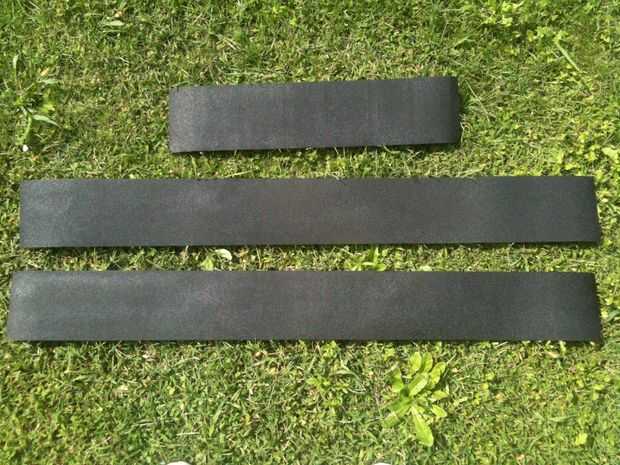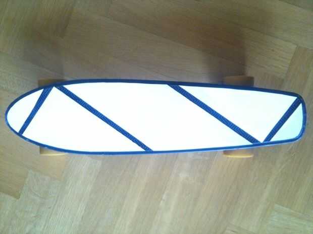 Puesto que también estoy construyendo un longboard ((tal vez futuro ible)) cuya cubierta mide 22 cm x 100 cm, que cortar el rollo de papel de lija de 3 piezas respectivamente largo 100 cm x 11 cm, 100 cm x 11 cm y 50 cm x 11 cm.