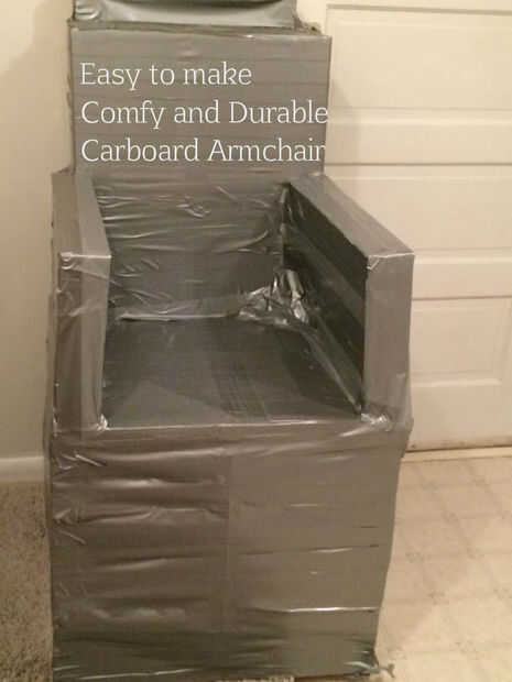 Mi primer proyecto (con algunos de mis amigos) es un sillón barato y resistente hecho de cartón, cinta, pegamento y madera.
