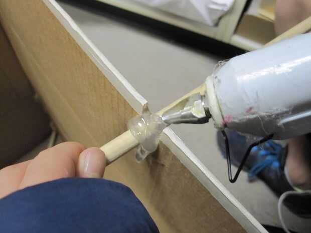 Repita lo que usted hizo por la parte inferior de la base pero antes de cinta el pedazo de cartón para acabado de la base, es necesario hacer un poco más. En primer lugar, usted necesitará agregar soporte en el medio. Lo hicimos usando cuatro clavijas pequeñas, les superposición de y luego les pega para que haga otra cruz en el medio (si es un poco confusa, que las imágenes de la parte superior pueden explicar mucho).