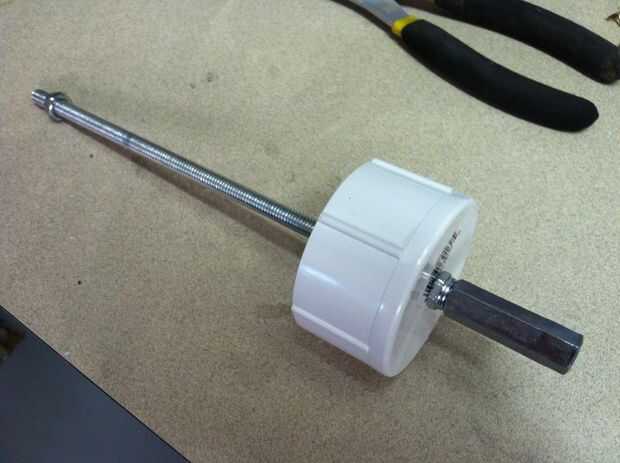 Utilizando la misma técnica como en el paso anterior, una segunda tuerca de nylon del hilo de rosca sobre la tapa y apriétela hacia abajo para sostenerlo en lugar. Luego pase la mitad de la tuerca de acoplamiento en la porción restante de la varilla.