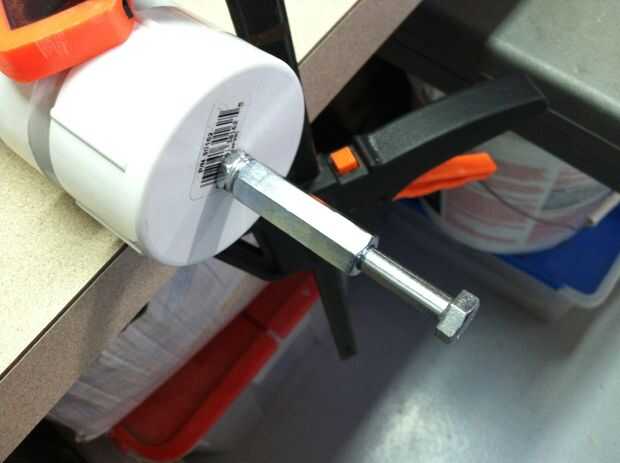Luego ajustar el molino y usar la sierra para cortar la cabeza hexagonal del perno, dejando atrás la barra suave del perno.