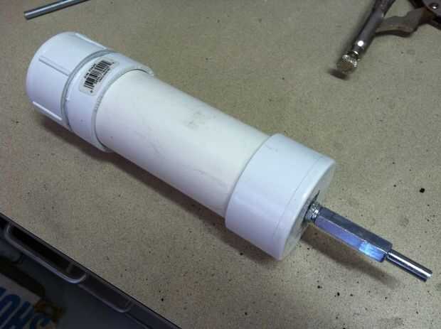 Luego deslice el adaptador del tornillo macho en el otro extremo de la tubería. (Esta es su segunda oportunidad para utilizar el cemento y oler esos gases).