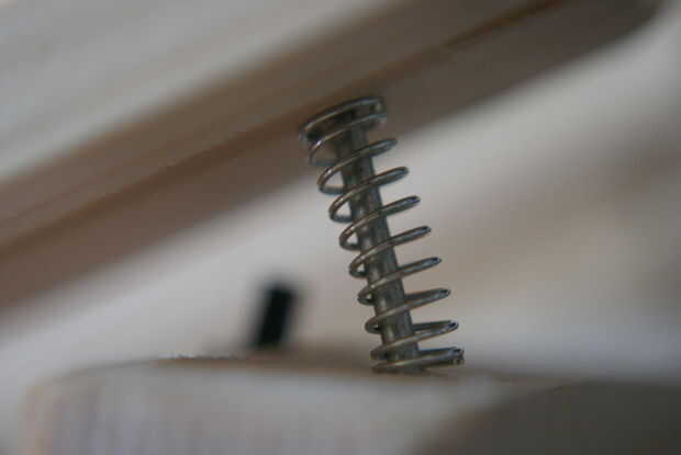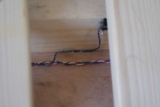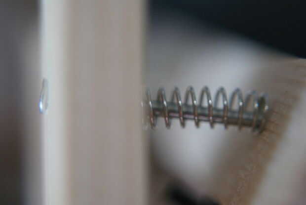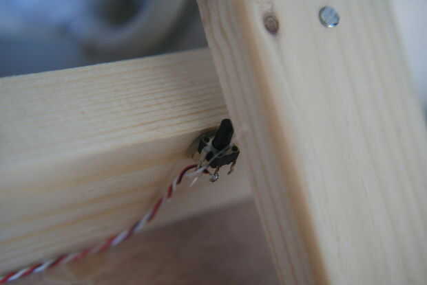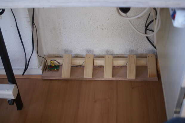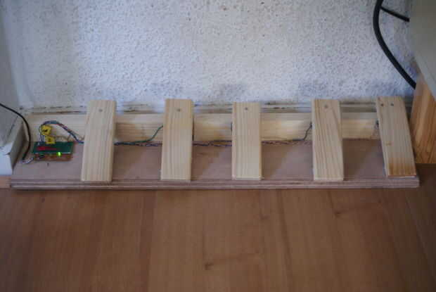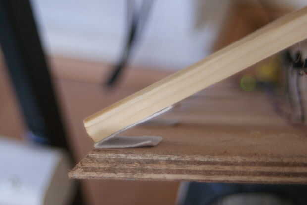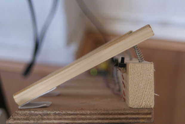 Los pedales y base están hechos de algunos restos de madera. Las bisagras están hechas de tiras de tela pegados a la base y pedal.
