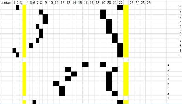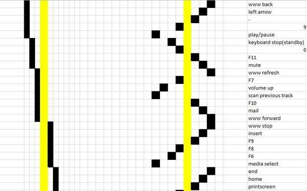 La parte más difícil en esta construcción probablemente fue encontrar la combinación correcta de los contactos. He probado todas las combinaciones posibles y poner que ellos en excel. Así cada vez que quiero usar otras teclas que sé dónde encontrarlos.