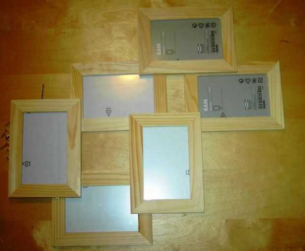 Después de que los marcos están dispuestos de la forma que desee, pegamento caliente en cada punto de la superposición de Marcos. Si funciona mejor que los cuadros se superponen en al menos dos lugares para los tornillos que añadirá a continuación.