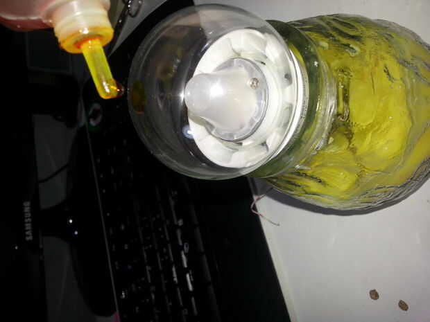 Empezar a verter el color en la parte superior de la bombilla que mezcla el color base para conseguir otras combinaciones!