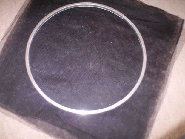 luego puse el aro en varias hojas cuadrados de malla de aproximadamente 2 pulgadas más ancha que el borde sobre que luego dobla los bordes mantiene en su lugar con clips bulldog y les sembraron juntos 5 veces mejor resistencia