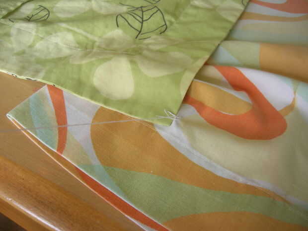 Sew (o pistola de pegamento) una mayor sobre el menor. el pliegue debe estar bajo la funda de almohada larga. no necesita pegamento o coser para la totalidad de los casos, deben hacer unas puntadas a cada lado y un medio.