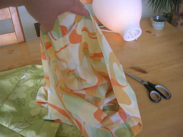 la parte fácil. Ya que la funda de almohada (uno superior) se abre por un lado, simplemente corte un pequeño agujero en el upperside otros, para que sea capaz de pasar por el polo.