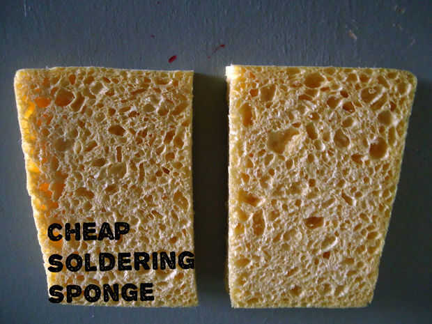 Esponjas de soldadura son vegetales, no una planta natural esponja como esta, sino una mezcla de fibras de celulosa que son procesados industrialmente. Por lo tanto, resiste a altas temperaturas considerables (~ 100 º c) como el algodón. Para usarlo con la soldadura de hierro, como una normal, mantenerlo húmedo.