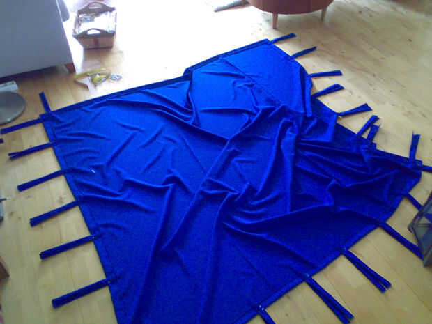 -Coloque cada dos golpes de tiempo mutuamente y luego pegarlo con agujas en la parte posterior del material principal (pantalla).