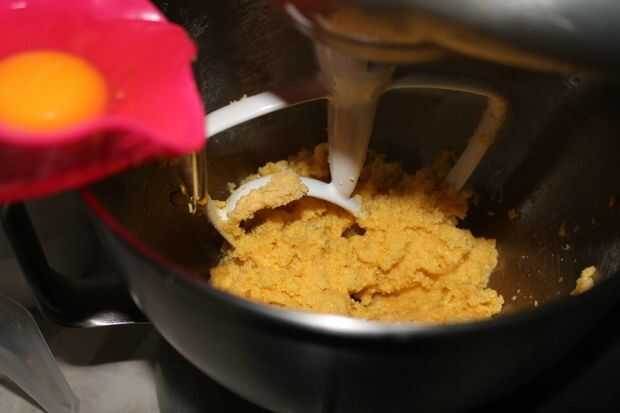 Consejo: No quiere arruinar su mezcla con un huevo podrido, así que, use un recipiente para romper el huevo, revisarlo y agregar a la batidora. Hacer lo mismo con el otro huevo y continúe batiendo.