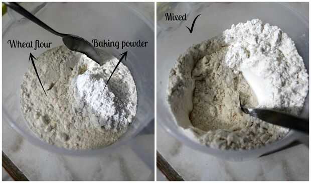 Paso 4: Harina de trigo, polvo de hornear y leche